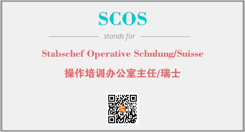 上述内容是“Stabschef Operative Schulung/Suisse”作为“SCOS”的缩写,解释为“操作培训办公室主任/瑞士”时的信息,以及英文缩略词SCOS所代表的英文单词,其对应的中文拼音、详细解释以及在英文中的流行度和相关分类、应用领域及应用示例等。