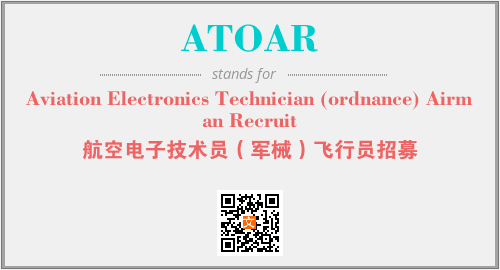 英文缩略词“ATOAR”经常作为“Aviation Electronics Technician (ordnance) Airman Recruit”的英文缩写来使用,中文表示:“航空电子技术员(军械)飞行员招募”。本文将详细介绍英文缩写词ATOAR所代表英文单词,其对应的中文拼音、详细解释以及在英语中的流行度。此外,还有关于缩略词ATOAR的分类、应用领域及相关应用示例等。