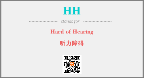 上述内容是“Hard of Hearing”作为“HH”的缩写,解释为“听力障碍”时的信息,以及英文缩略词HH所代表的英文单词,其对应的中文拼音、详细解释以及在英文中的流行度和相关分类、应用领域及应用示例等。