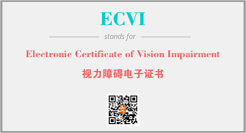 上述内容是“Electronic Certificate of Vision Impairment”作为“ECVI”的缩写,解释为“视力障碍电子证书”时的信息,以及英文缩略词ECVI所代表的英文单词,其对应的中文拼音、详细解释以及在英文中的流行度和相关分类、应用领域及应用示例等。
