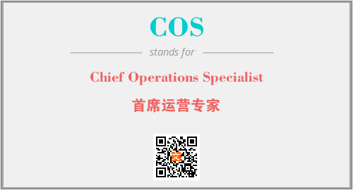 英文缩略词“COS”经常作为“Chief Operations Specialist”的英文缩写来使用,中文表示:“首席运营专家”。本文将详细介绍英文缩写词COS所代表英文单词,其对应的中文拼音、详细解释以及在英语中的流行度。此外,还有关于缩略词COS的分类、应用领域及相关应用示例等。