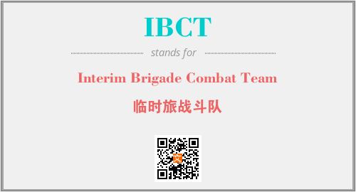英文缩略词“IBCT”经常作为“Interim Brigade Combat Team”的英文缩写来使用,中文表示:“临时旅战斗队”。本文将详细介绍英文缩写词IBCT所代表英文单词,其对应的中文拼音、详细解释以及在英语中的流行度。此外,还有关于缩略词IBCT的分类、应用领域及相关应用示例等。