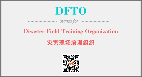 上述内容是“Disaster Field Training Organization”作为“DFTO”的缩写,解释为“灾害现场培训组织”时的信息,以及英文缩略词DFTO所代表的英文单词,其对应的中文拼音、详细解释以及在英文中的流行度和相关分类、应用领域及应用示例等。