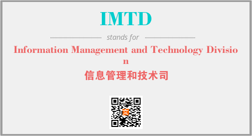 英文缩略词“IMTD”经常作为“Information Management and Technology Division”的英文缩写来使用,中文表示:“信息管理和技术司”。本文将详细介绍英文缩写词IMTD所代表英文单词,其对应的中文拼音、详细解释以及在英语中的流行度。此外,还有关于缩略词IMTD的分类、应用领域及相关应用示例等。