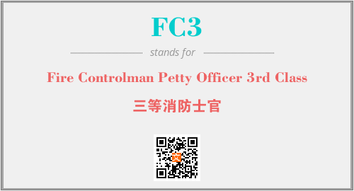 上述内容是“Fire Controlman Petty Officer 3rd Class”作为“FC3”的缩写,解释为“三等消防士官”时的信息,以及英文缩略词FC3所代表的英文单词,其对应的中文拼音、详细解释以及在英文中的流行度和相关分类、应用领域及应用示例等。