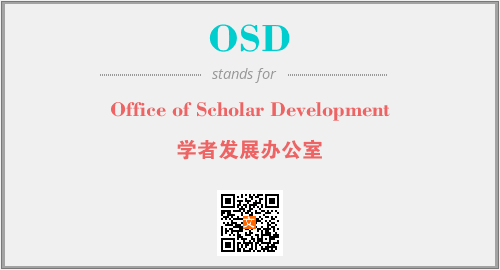 上述内容是“Office of Scholar Development”作为“OSD”的缩写,解释为“学者发展办公室”时的信息,以及英文缩略词OSD所代表的英文单词,其对应的中文拼音、详细解释以及在英文中的流行度和相关分类、应用领域及应用示例等。
