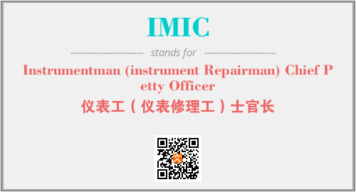 上述内容是“Instrumentman (instrument Repairman) Chief Petty Officer”作为“IMIC”的缩写,解释为“仪表工(仪表修理工)士官长”时的信息,以及英文缩略词IMIC所代表的英文单词,其对应的中文拼音、详细解释以及在英文中的流行度和相关分类、应用领域及应用示例等。