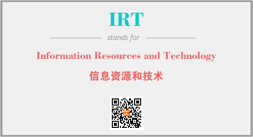 以上为Information Resources and Technology英文缩略词IRT的中文解释,以及该英文缩写在英语的流行度、分类和应用领域方面的信息。
