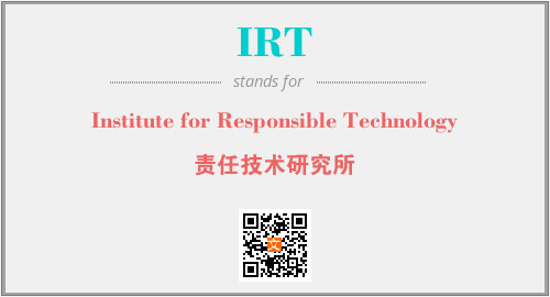 上述内容是“Institute for Responsible Technology”作为“IRT”的缩写,解释为“责任技术研究所”时的信息,以及英文缩略词IRT所代表的英文单词,其对应的中文拼音、详细解释以及在英文中的流行度和相关分类、应用领域及应用示例等。