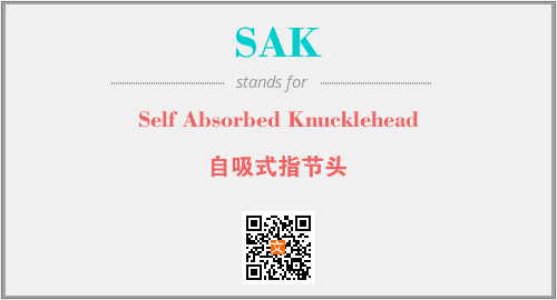 英文缩略词“SAK”经常作为“Self Absorbed Knucklehead”的英文缩写来使用,中文表示:“自吸式指节头”。本文将详细介绍英文缩写词SAK所代表英文单词,其对应的中文拼音、详细解释以及在英语中的流行度。此外,还有关于缩略词SAK的分类、应用领域及相关应用示例等。