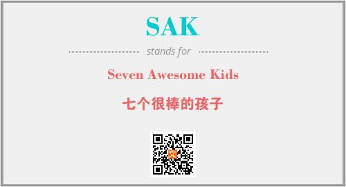 上述内容是“Seven Awesome Kids”作为“SAK”的缩写,解释为“七个很棒的孩子”时的信息,以及英文缩略词SAK所代表的英文单词,其对应的中文拼音、详细解释以及在英文中的流行度和相关分类、应用领域及应用示例等。