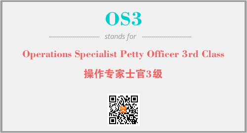 上述内容是“Operations Specialist Petty Officer 3rd Class”作为“OS3”的缩写,解释为“操作专家士官3级”时的信息,以及英文缩略词OS3所代表的英文单词,其对应的中文拼音、详细解释以及在英文中的流行度和相关分类、应用领域及应用示例等。