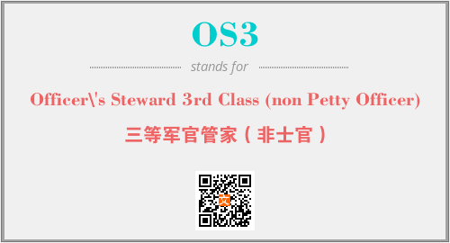 上述内容是“Officer\'s Steward 3rd Class (non Petty Officer)”作为“OS3”的缩写,解释为“三等军官管家(非士官)”时的信息,以及英文缩略词OS3所代表的英文单词,其对应的中文拼音、详细解释以及在英文中的流行度和相关分类、应用领域及应用示例等。