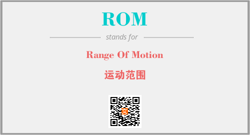 上述内容是“Range Of Motion”作为“ROM”的缩写,解释为“运动范围”时的信息,以及英文缩略词ROM所代表的英文单词,其对应的中文拼音、详细解释以及在英文中的流行度和相关分类、应用领域及应用示例等。