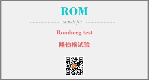 英文缩略词“ROM”经常作为“Romberg test”的英文缩写来使用,中文表示:“隆伯格试验”。本文将详细介绍英文缩写词ROM所代表英文单词,其对应的中文拼音、详细解释以及在英语中的流行度。此外,还有关于缩略词ROM的分类、应用领域及相关应用示例等。