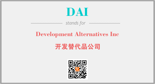 英文缩略词“DAI”经常作为“Development Alternatives Inc”的英文缩写来使用,中文表示:“开发替代品公司”。本文将详细介绍英文缩写词DAI所代表英文单词,其对应的中文拼音、详细解释以及在英语中的流行度。此外,还有关于缩略词DAI的分类、应用领域及相关应用示例等。