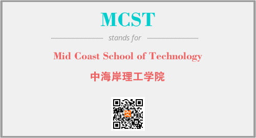 英文缩略词“MCST”经常作为“Mid Coast School of Technology”的英文缩写来使用,中文表示:“中海岸理工学院”。本文将详细介绍英文缩写词MCST所代表英文单词,其对应的中文拼音、详细解释以及在英语中的流行度。此外,还有关于缩略词MCST的分类、应用领域及相关应用示例等。