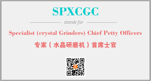 上述内容是“Specialist (crystal Grinders) Chief Petty Officers”作为“SPXCGC”的缩写,解释为“专家(水晶研磨机)首席士官”时的信息,以及英文缩略词SPXCGC所代表的英文单词,其对应的中文拼音、详细解释以及在英文中的流行度和相关分类、应用领域及应用示例等。