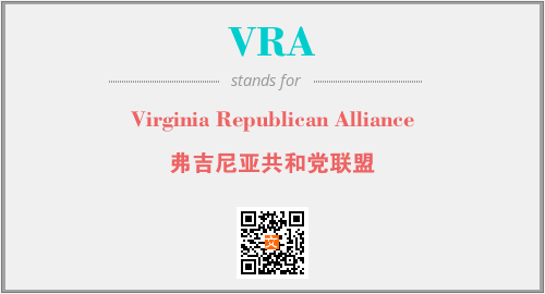 以上为Virginia Republican Alliance英文缩略词VRA的中文解释,以及该英文缩写在英语的流行度、分类和应用领域方面的信息。