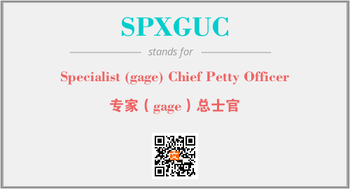 以上为Specialist (gage) Chief Petty Officer英文缩略词SPXGUC的中文解释,以及该英文缩写在英语的流行度、分类和应用领域方面的信息。