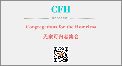 英文缩略词“CFH”经常作为“Congregations for the Homeless”的英文缩写来使用,中文表示:“无家可归者集会”。本文将详细介绍英文缩写词CFH所代表英文单词,其对应的中文拼音、详细解释以及在英语中的流行度。此外,还有关于缩略词CFH的分类、应用领域及相关应用示例等。