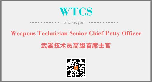 上述内容是“Weapons Technician Senior Chief Petty Officer”作为“WTCS”的缩写,解释为“武器技术员高级首席士官”时的信息,以及英文缩略词WTCS所代表的英文单词,其对应的中文拼音、详细解释以及在英文中的流行度和相关分类、应用领域及应用示例等。