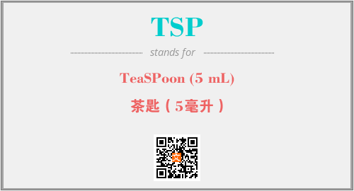 英文缩略词“TSP”经常作为“TeaSPoon (5 mL)”的英文缩写来使用,中文表示:“茶匙(5毫升)”。本文将详细介绍英文缩写词TSP所代表英文单词,其对应的中文拼音、详细解释以及在英语中的流行度。此外,还有关于缩略词TSP的分类、应用领域及相关应用示例等。