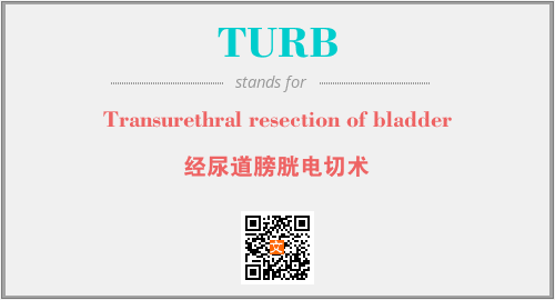 上述内容是“Transurethral resection of bladder”作为“TURB”的缩写,解释为“经尿道膀胱电切术”时的信息,以及英文缩略词TURB所代表的英文单词,其对应的中文拼音、详细解释以及在英文中的流行度和相关分类、应用领域及应用示例等。