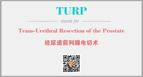 英文缩略词“TURP”经常作为“Trans-Urethral Resection of the Prostate”的英文缩写来使用,中文表示:“经尿道前列腺电切术”。本文将详细介绍英文缩写词TURP所代表英文单词,其对应的中文拼音、详细解释以及在英语中的流行度。此外,还有关于缩略词TURP的分类、应用领域及相关应用示例等。