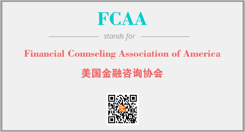 上述内容是“Financial Counseling Association of America”作为“FCAA”的缩写,解释为“美国金融咨询协会”时的信息,以及英文缩略词FCAA所代表的英文单词,其对应的中文拼音、详细解释以及在英文中的流行度和相关分类、应用领域及应用示例等。