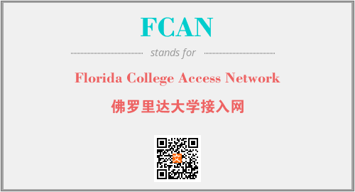 英文缩略词“FCAN”经常作为“Florida College Access Network”的英文缩写来使用,中文表示:“佛罗里达大学接入网”。本文将详细介绍英文缩写词FCAN所代表英文单词,其对应的中文拼音、详细解释以及在英语中的流行度。此外,还有关于缩略词FCAN的分类、应用领域及相关应用示例等。