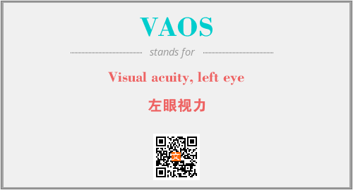 上述内容是“Visual acuity, left eye”作为“VAOS”的缩写,解释为“左眼视力”时的信息,以及英文缩略词VAOS所代表的英文单词,其对应的中文拼音、详细解释以及在英文中的流行度和相关分类、应用领域及应用示例等。