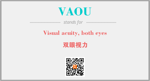 英文缩略词“VAOU”经常作为“Visual acuity, both eyes”的英文缩写来使用,中文表示:“双眼视力”。本文将详细介绍英文缩写词VAOU所代表英文单词,其对应的中文拼音、详细解释以及在英语中的流行度。此外,还有关于缩略词VAOU的分类、应用领域及相关应用示例等。