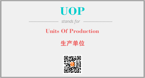 英文缩略词“UOP”经常作为“Units Of Production”的英文缩写来使用,中文表示:“生产单位”。本文将详细介绍英文缩写词UOP所代表英文单词,其对应的中文拼音、详细解释以及在英语中的流行度。此外,还有关于缩略词UOP的分类、应用领域及相关应用示例等。