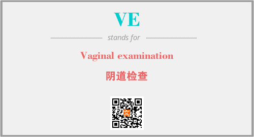 上述内容是“Vaginal examination”作为“VE”的缩写,解释为“阴道检查”时的信息,以及英文缩略词VE所代表的英文单词,其对应的中文拼音、详细解释以及在英文中的流行度和相关分类、应用领域及应用示例等。