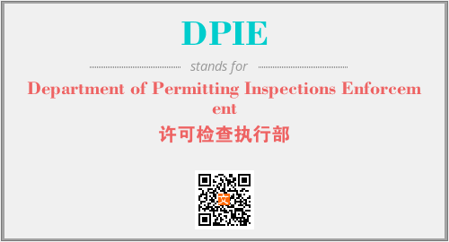 上述内容是“Department of Permitting Inspections Enforcement”作为“DPIE”的缩写,解释为“许可检查执行部”时的信息,以及英文缩略词DPIE所代表的英文单词,其对应的中文拼音、详细解释以及在英文中的流行度和相关分类、应用领域及应用示例等。