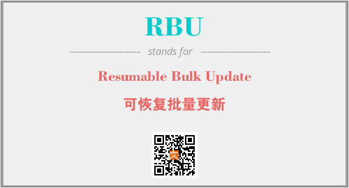 上述内容是“Resumable Bulk Update”作为“RBU”的缩写,解释为“可恢复批量更新”时的信息,以及英文缩略词RBU所代表的英文单词,其对应的中文拼音、详细解释以及在英文中的流行度和相关分类、应用领域及应用示例等。