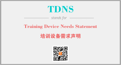 上述内容是“Training Device Needs Statement”作为“TDNS”的缩写,解释为“培训设备需求声明”时的信息,以及英文缩略词TDNS所代表的英文单词,其对应的中文拼音、详细解释以及在英文中的流行度和相关分类、应用领域及应用示例等。