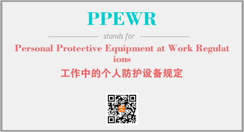 上述内容是“Personal Protective Equipment at Work Regulations”作为“PPEWR”的缩写,解释为“工作中的个人防护设备规定”时的信息,以及英文缩略词PPEWR所代表的英文单词,其对应的中文拼音、详细解释以及在英文中的流行度和相关分类、应用领域及应用示例等。