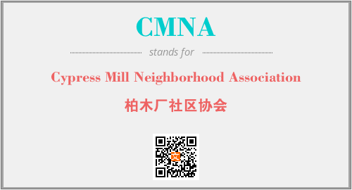 上述内容是“Cypress Mill Neighborhood Association”作为“CMNA”的缩写,解释为“柏木厂社区协会”时的信息,以及英文缩略词CMNA所代表的英文单词,其对应的中文拼音、详细解释以及在英文中的流行度和相关分类、应用领域及应用示例等。