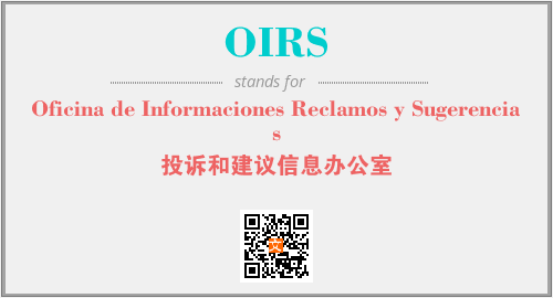 英文缩略词“OIRS”经常作为“Oficina de Informaciones Reclamos y Sugerencias”的英文缩写来使用,中文表示:“投诉和建议信息办公室”。本文将详细介绍英文缩写词OIRS所代表英文单词,其对应的中文拼音、详细解释以及在英语中的流行度。此外,还有关于缩略词OIRS的分类、应用领域及相关应用示例等。