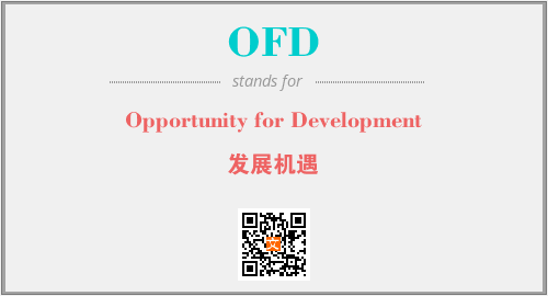 英文缩略词“OFD”经常作为“Opportunity for Development”的英文缩写来使用,中文表示:“发展机遇”。本文将详细介绍英文缩写词OFD所代表英文单词,其对应的中文拼音、详细解释以及在英语中的流行度。此外,还有关于缩略词OFD的分类、应用领域及相关应用示例等。