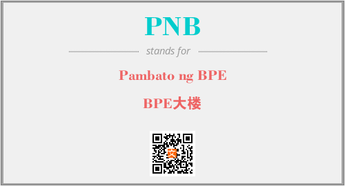 英文缩略词“PNB”经常作为“Pambato ng BPE”的英文缩写来使用,中文表示:“BPE大楼”。本文将详细介绍英文缩写词PNB所代表英文单词,其对应的中文拼音、详细解释以及在英语中的流行度。此外,还有关于缩略词PNB的分类、应用领域及相关应用示例等。