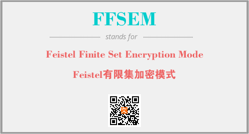 上述内容是“Feistel Finite Set Encryption Mode”作为“FFSEM”的缩写,解释为“Feistel有限集加密模式”时的信息,以及英文缩略词FFSEM所代表的英文单词,其对应的中文拼音、详细解释以及在英文中的流行度和相关分类、应用领域及应用示例等。