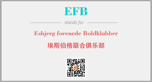 上述内容是“Esbjerg forenede Boldklubber”作为“EFB”的缩写,解释为“埃斯伯格联合俱乐部”时的信息,以及英文缩略词EFB所代表的英文单词,其对应的中文拼音、详细解释以及在英文中的流行度和相关分类、应用领域及应用示例等。