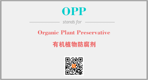 上述内容是“Organic Plant Preservative”作为“OPP”的缩写,解释为“有机植物防腐剂”时的信息,以及英文缩略词OPP所代表的英文单词,其对应的中文拼音、详细解释以及在英文中的流行度和相关分类、应用领域及应用示例等。