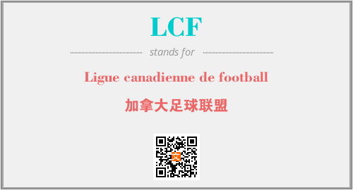 上述内容是“Ligue canadienne de football”作为“LCF”的缩写,解释为“加拿大足球联盟”时的信息,以及英文缩略词LCF所代表的英文单词,其对应的中文拼音、详细解释以及在英文中的流行度和相关分类、应用领域及应用示例等。