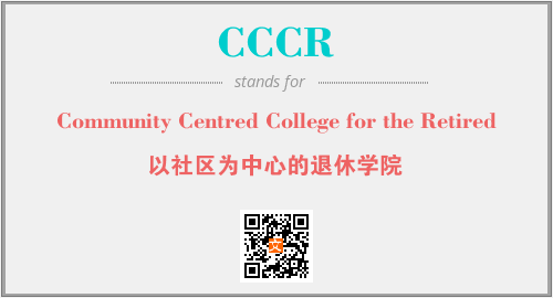 以上为Community Centred College for the Retired英文缩略词CCCR的中文解释,以及该英文缩写在英语的流行度、分类和应用领域方面的信息。