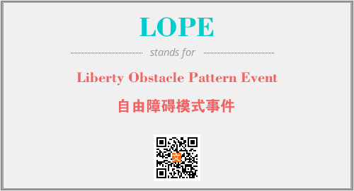 上述内容是“Liberty Obstacle Pattern Event”作为“LOPE”的缩写,解释为“自由障碍模式事件”时的信息,以及英文缩略词LOPE所代表的英文单词,其对应的中文拼音、详细解释以及在英文中的流行度和相关分类、应用领域及应用示例等。
