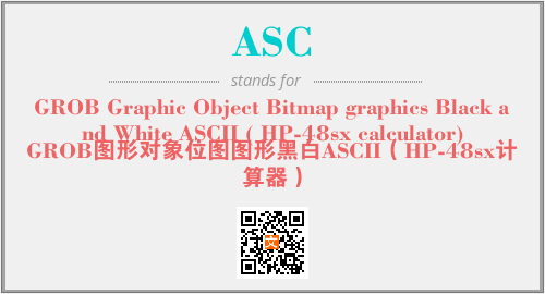 上述内容是“GROB Graphic Object Bitmap graphics Black and White ASCII ( HP-48sx calculator)”作为“ASC”的缩写,解释为“GROB图形对象位图图形黑白ASCII(HP-48sx计算器)”时的信息,以及英文缩略词ASC所代表的英文单词,其对应的中文拼音、详细解释以及在英文中的流行度和相关分类、应用领域及应用示例等。